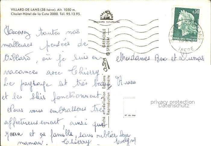 12339262 carte postale Villard-de-Lans Chalet-Hotel de la Cote postalisch gelaufen Erhaltung siehe scans KatCode: 11170038138548