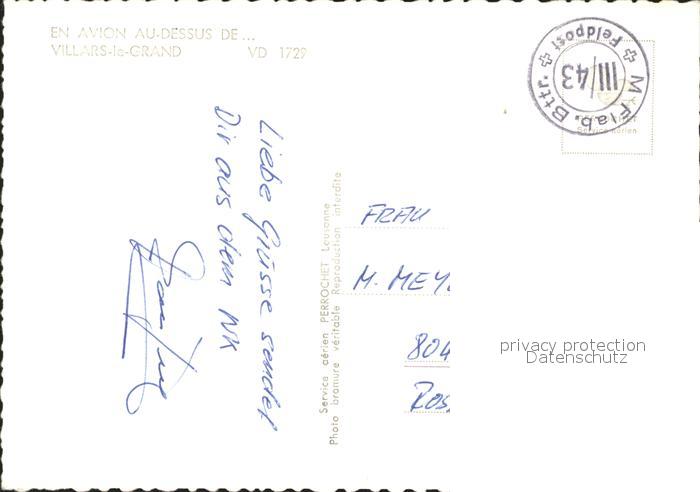 11644849 Villars-le-Grand Vue aerienne postalisch gelaufen Feldpost Erhaltung siehe scans Feldpost alte Postkarte hz_F Katcode 11470240765900