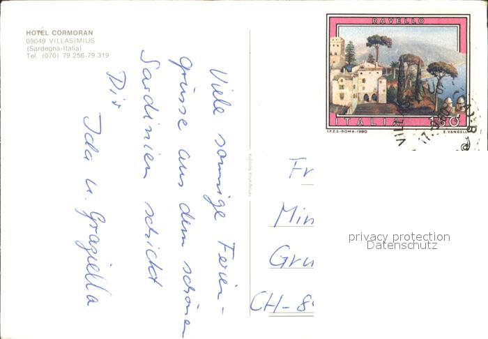 old postcard Villasimius Hotel Cormoran Strand Fliegeraufnahme postalisch gelaufen Erhaltung siehe scans