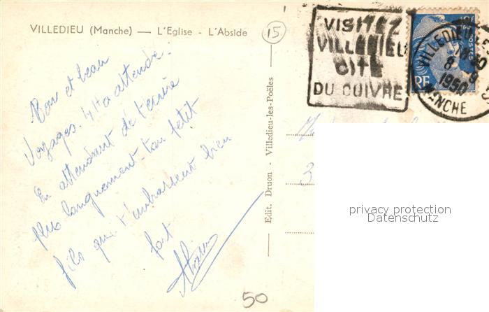 13553740 carte postale Villedieu-les-Poeles Eglise l’Abside postalisch gelaufen Erhaltung siehe scans [WerneD78] KatCode: 11170050450639