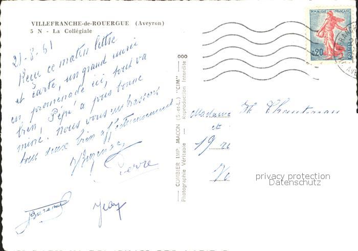 12079330 carte postale Villefranche-de-Rouergue Collegiale postalisch gelaufen Erhaltung siehe scans KatCode: 11170012312300