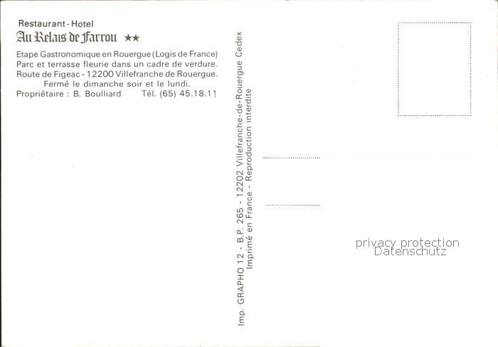 11845462 Villefranche-de-Rouergue Hotel Restaurant Au Relais du Farrou KatCode 11170012312300