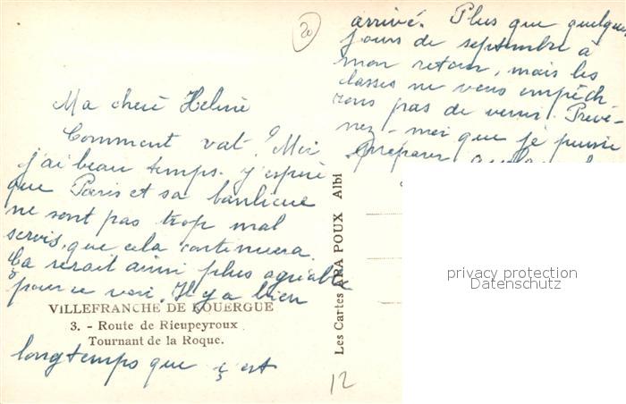 13494316 Villefranche-de-Rouergue Route de Rieupeyroux Tournant de la Roque postalisch nicht gelaufen Erhaltung siehe scans [WerneD78] KatCode: 11170012312300