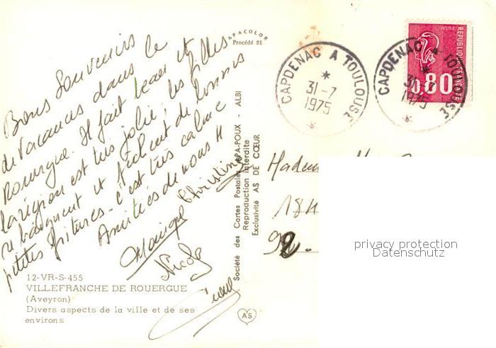 13232320 carte postale Villefranche-de-Rouergue postalisch gelaufen Erhaltung siehe scans [NatalD47] KatCode: 11170012312300