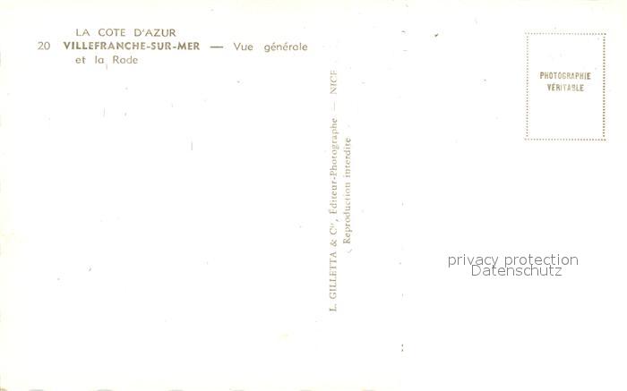 13534809 Villefranche-sur-Mer Vue generale et la Rade postalisch nicht gelaufen Erhaltung siehe scans [WerneD78] KatCode: 11170006206159