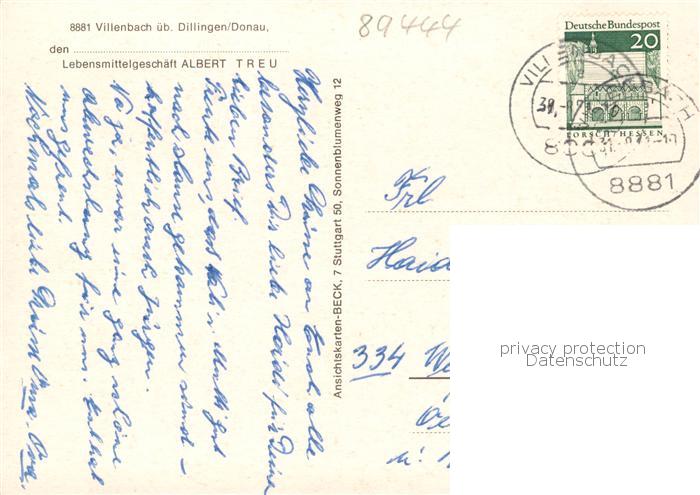 73855341 alte Postkarte Villenbach Teilansichten Motiv mit Kirche postalisch gelaufen Erhaltung siehe scans [FriedD77] KatCode: 11110009773179