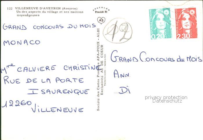12324760 carte postale Villeneuve Aveyron Maisons moyenageuses postalisch gelaufen Erhaltung siehe scans KatCode: 11170012312301