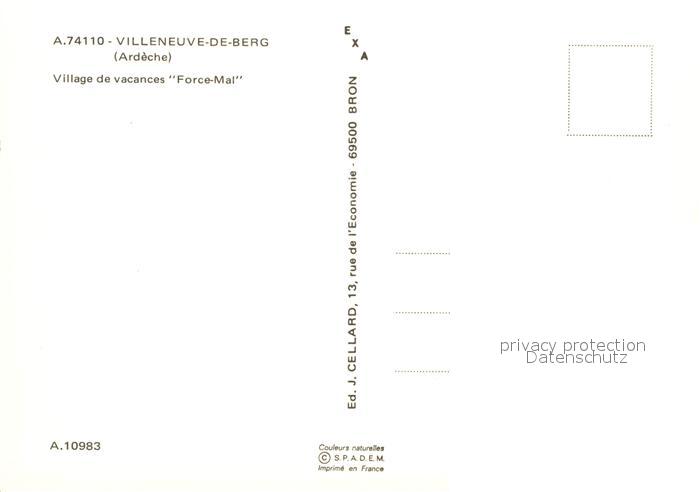 12953598 Villeneuve-de-Berg Village de vacandes Force Mal postalisch nicht gelaufen Erhaltung siehe scans [WerneD78] KatCode: 11170007107341