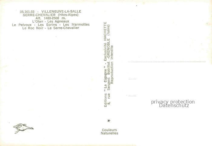 34145317 Villeneuve-la-Salle Briancon 05 Hautes-Alpes Olan Les Agneaux Le Pelvoux Les Ecrins Les Marmottes Le Roc Noir Le Serre Chevalier postalisch nicht gelaufen Erhaltung siehe scans [WerneD78] KatCode: 11170005105161