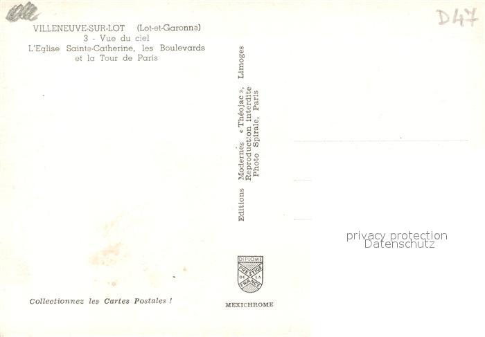 13576748 Villeneuve-sur-Lot Eglise Sainte Catherine Boulevards et Tour de Paris vue aérienne postalisch nicht gelaufen Erhaltung siehe scans [FriedD77] KatCode: 11170047347323