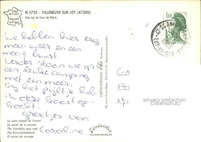 12434999 carte postale Villeneuve-sur-Lot Stadtansicht postalisch gelaufen Erhaltung siehe scans KatCode: 11170047347323