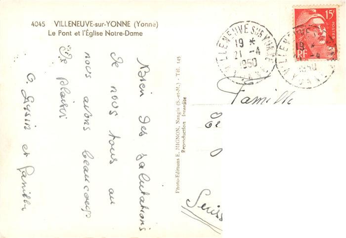 13884563 Villeneuve-sur-Yonne Le Pont et l Eglise Notre Dame postalisch gelaufen Erhaltung siehe scans [FriedD77] carte postale Frie Katcode 11170089389464