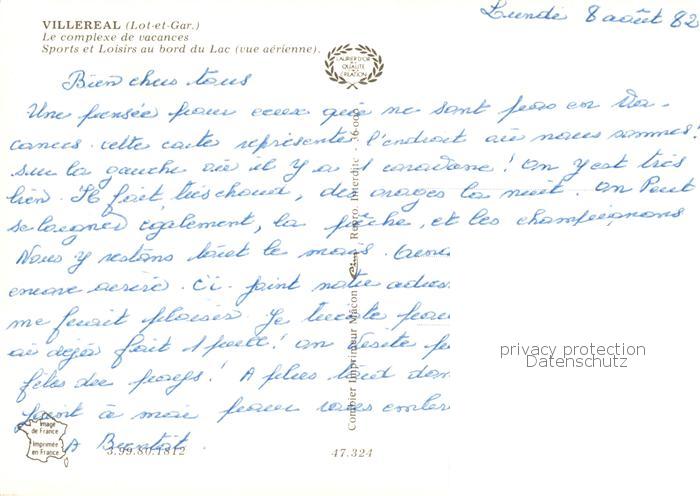 13797726 Villereal 47 Lot-et-Garonne Le complexe de vacances Sports et Loisirs au bord du Lac Vue aerienne postalisch nicht gelaufen Erhaltung siehe scans [WerneD78] Wern Katcode 11170047347324