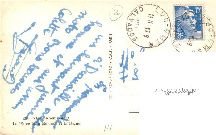 13494320 carte postale Villers-sur-Mer LaPlace Jean Mermoz et la Digue postalisch gelaufen Erhaltung siehe scans [WerneD78] KatCode: 11170014314754