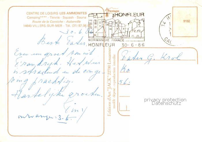 12824987 carte postale Villers-sur-Mer Les Ammonites Camping postalisch gelaufen Erhaltung siehe scans [LiesaD40] KatCode: 11170014314754