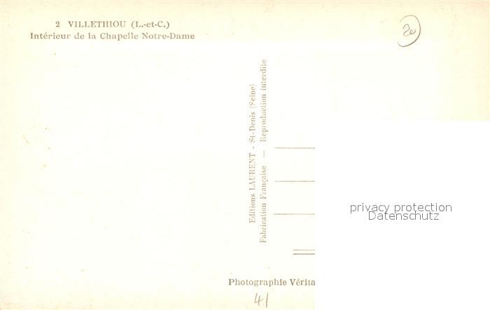 13504731 Villethiou Intérieur de la Chapelle Notre Dame postalisch nicht gelaufen Erhaltung siehe scans [FriedD77] KatCode: 11170041241199