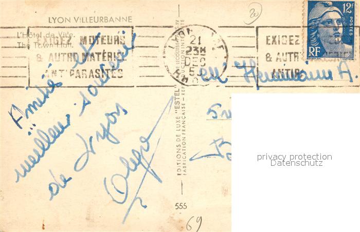 13483945 carte postale Villeurbanne Hotel de Ville postalisch gelaufen Erhaltung siehe scans [FriedD77] KatCode: 11170069169266