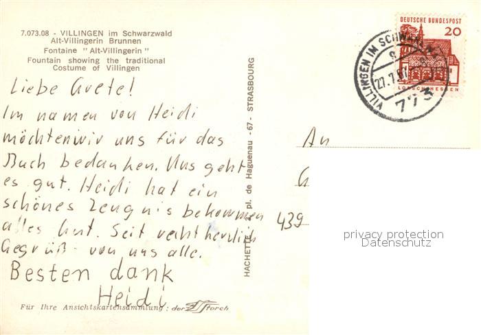 72926885 alte Postkarte Villingen-Schwenningen Alt Villingerin Brunnen postalisch gelaufen Erhaltung siehe scans [FriedD77] KatCode: 11110008326074