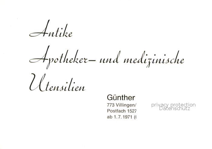73783001 Villingen -Schwenningen Antike Apotheker und med Utensilien Heseler postalisch nicht gelaufen Werbekarte (keine Postkarte) Erhaltung siehe scans [WerneD78] KatCode: 11110008326074