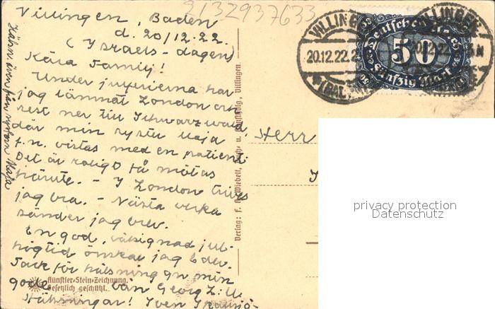 31841280 alte Postkarte Villingen-Schwenningen Bickentor Kuenstler-Steinzeichnung postalisch gelaufen Erhaltung siehe scans KatCode: 11110008326074