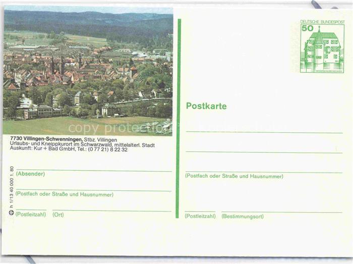 74123212 VILLINGEN -SCHWENNINGEN BW Panorama Urlaubs- und Kneippkurort im Schwarzwald Luftaufnahme postalisch nicht gelaufen Ganzsache (eingedruckte Briefmarke) Erhaltung siehe scans [FriedD77] KatCode: 11110008326074