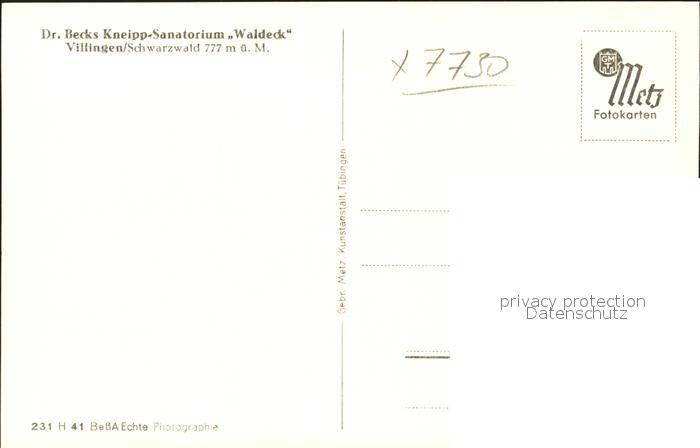 31714992 Villingen-Schwenningen Dr. Becks Kneipp-Sanatorium Waldeck postalisch nicht gelaufen Erhaltung siehe scans KatCode: 11110008326074