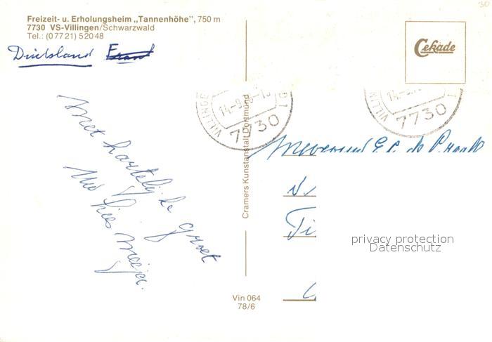 72999600 alte Postkarte Villingen-Schwenningen Erholungsheim Tannenhoehe postalisch gelaufen Erhaltung siehe scans [WerneD78] KatCode: 11110008326074