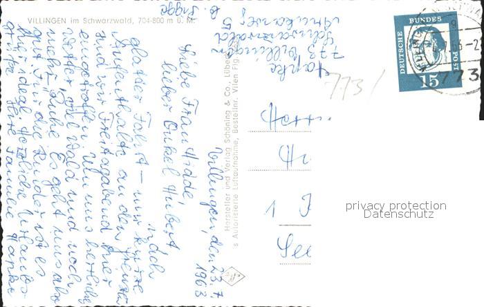 31728685 alte Postkarte Villingen-Schwenningen Fliegeraufnahme postalisch gelaufen Erhaltung siehe scans KatCode: 11110008326074