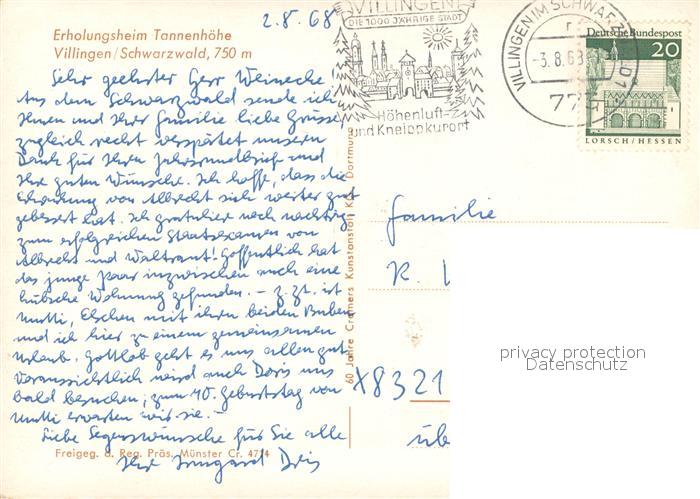 73616123 alte Postkarte Villingen-Schwenningen Fliegeraufnahme postalisch gelaufen Erhaltung siehe scans [WerneD78] KatCode: 11110008326074