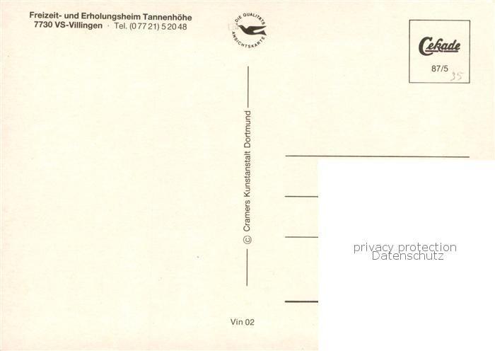 73780734 Villingen -Schwenningen Freizeit und Erholungsheim Tannenhoehe postalisch nicht gelaufen Erhaltung siehe scans [WerneD78] KatCode: 11110008326074