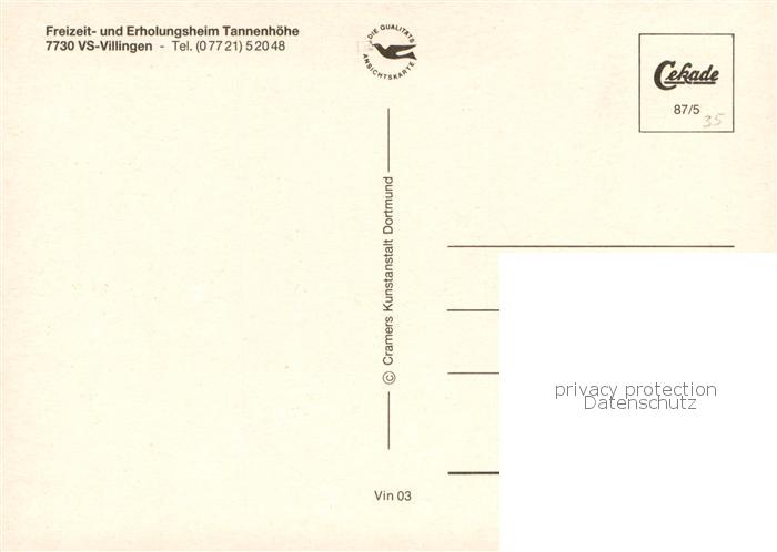 73780724 Villingen -Schwenningen Freizeit und Erholungsheim Tannenhoehe postalisch nicht gelaufen Erhaltung siehe scans [WerneD78] KatCode: 11110008326074