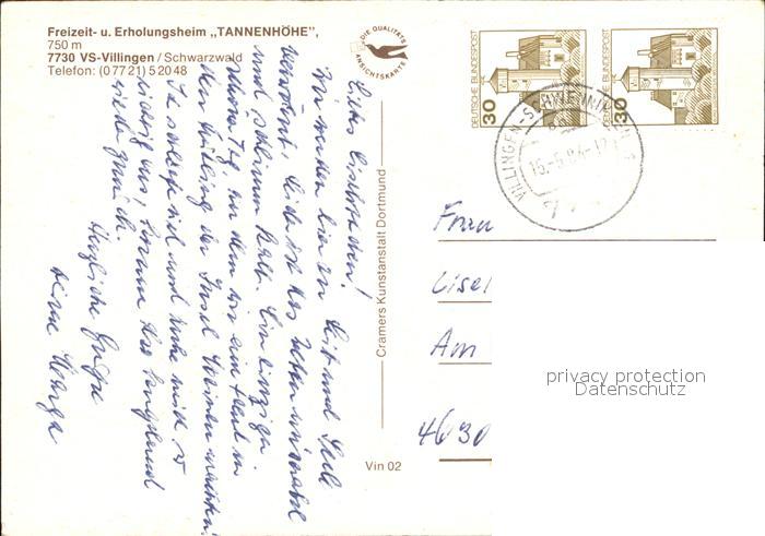 72524218 alte Postkarte Villingen-Schwenningen Freizeit und Erholungsheim Tannenhoehe postalisch gelaufen Erhaltung siehe scans KatCode: 11110008326074