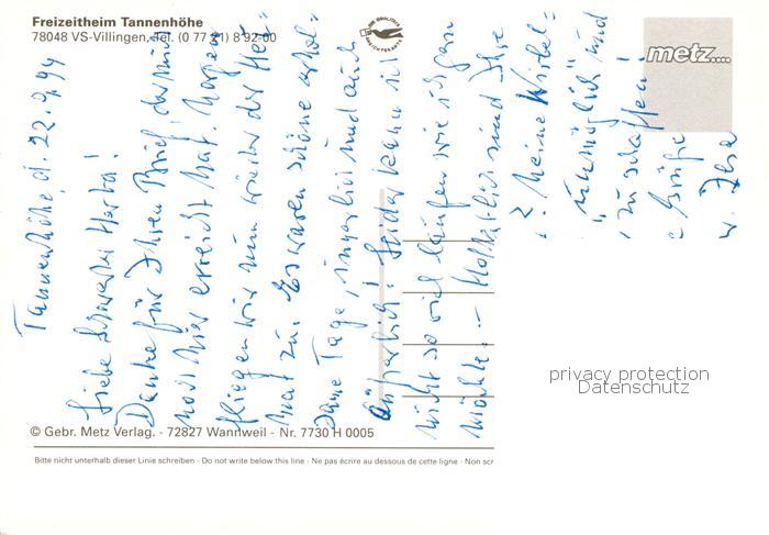 73837829 Villingen -Schwenningen Freizeitheim Tannenhoehe postalisch nicht gelaufen Erhaltung siehe scans [WerneD78] KatCode: 11110008326074