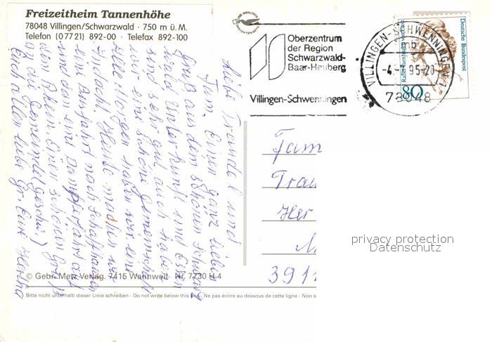 72902600 alte Postkarte Villingen-Schwenningen Freizeitheim Tannenhoehe postalisch gelaufen Erhaltung siehe scans [FriedD77] KatCode: 11110008326074