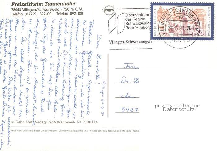 72964649 alte Postkarte Villingen-Schwenningen Freizeitheim Tannenhoehe Liegewiese postalisch gelaufen Erhaltung siehe scans [FriedD77] KatCode: 11110008326074