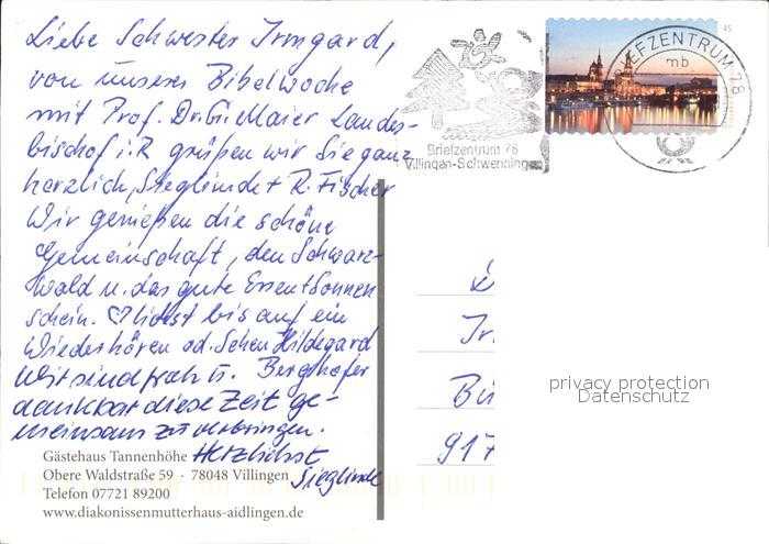 72606608 alte Postkarte Villingen-Schwenningen Gaestehaus Tannenhoehe postalisch gelaufen Erhaltung siehe scans [NatalD47] KatCode: 11110008326074