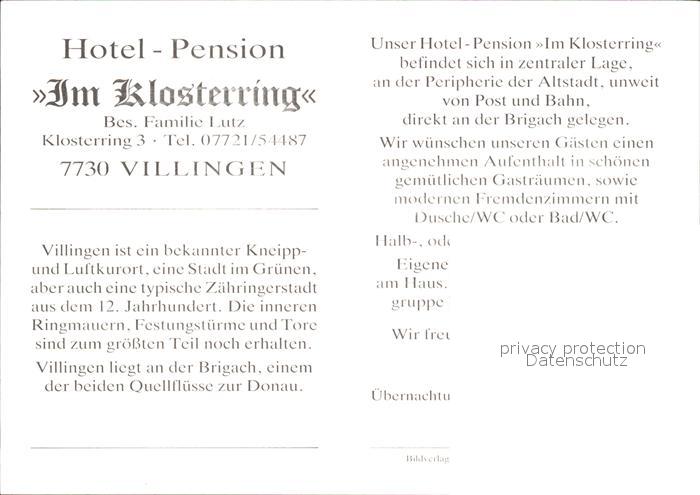 71940283 Villingen-Schwenningen Hotel Pension Klosterring postalisch nicht gelaufen Werbekarte (keine Postkarte) Erhaltung siehe scans KatCode: 11110008326074