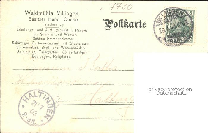 32179369 alte Postkarte Villingen-Schwenningen Hotel-Restaurant Waldmuehle postalisch gelaufen Erhaltung siehe scans KatCode: 11110008326074