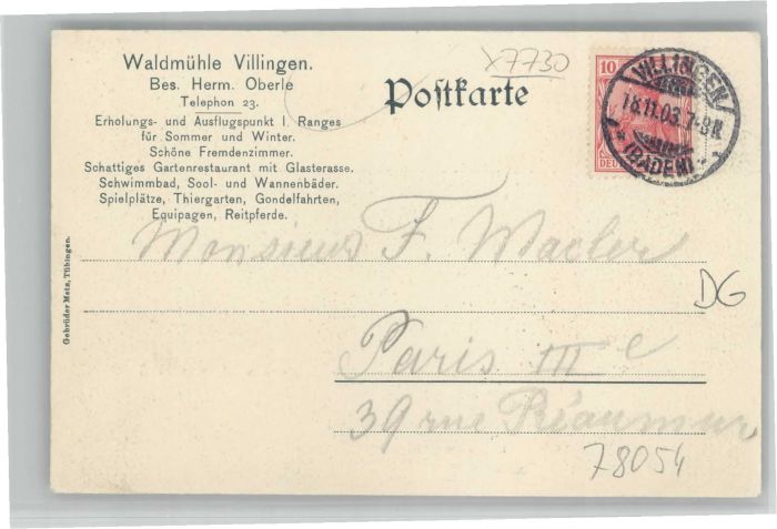 40732910 Villingen-Schwenningen Hotel Restaurant Waldmühle KatCode 11110008326074