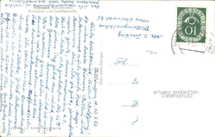 31731311 alte Postkarte Villingen-Schwenningen Kirnacher – und Scheffelstrasse postalisch gelaufen KatCode: 11110008326074