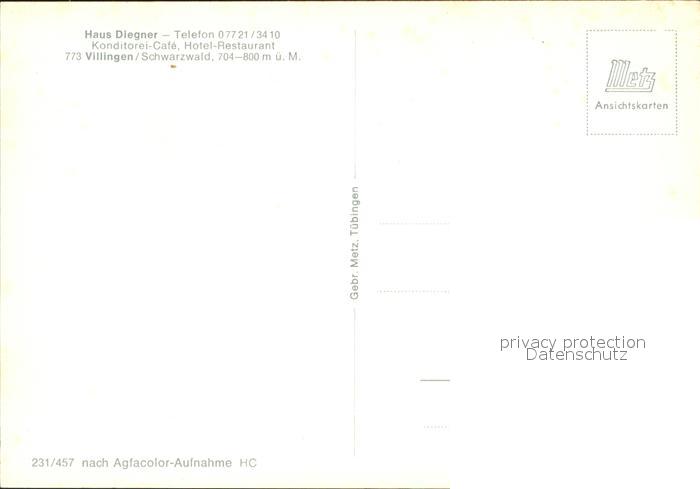 71830417 Villingen-Schwenningen Konditorei-Cafe Hotel-Restaurant Haus Diegner postalisch nicht gelaufen Erhaltung siehe scans KatCode: 11110008326074