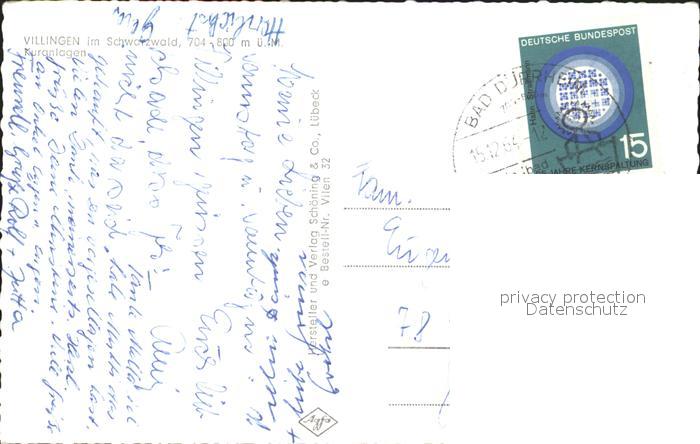 72091574 alte Postkarte Villingen-Schwenningen Kuranlagen postalisch gelaufen Erhaltung siehe scans KatCode: 11110008326074