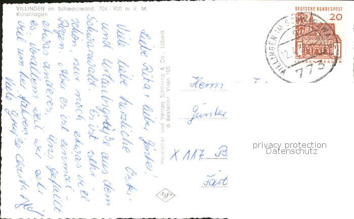 72034264 alte Postkarte Villingen-Schwenningen Kuranlagen postalisch gelaufen Erhaltung siehe scans KatCode: 11110008326074