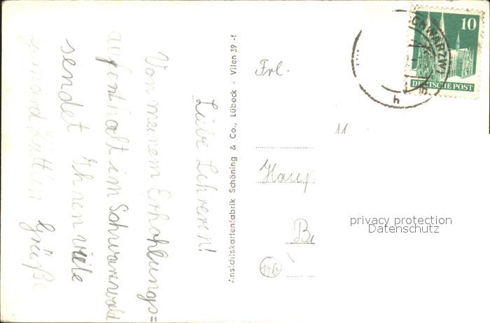 72007531 alte Postkarte Villingen-Schwenningen Kuranlagen Kneipphaus Kreuzgang Rathaus Bickentor und Kloster Rathausgasse Muensterturm Kneippbad postalisch gelaufen Erhaltung siehe scans KatCode: 11110008326074