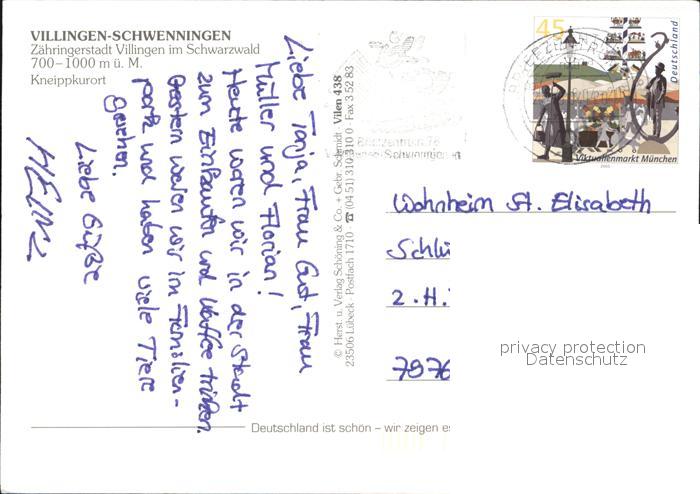 72574087 alte Postkarte Villingen-Schwenningen Obere Strasse Kurgarten Franziskanerkloster Verkehrsamt Rathaeuser postalisch gelaufen Erhaltung siehe scans [KathaD79] KatCode: 11110008326074