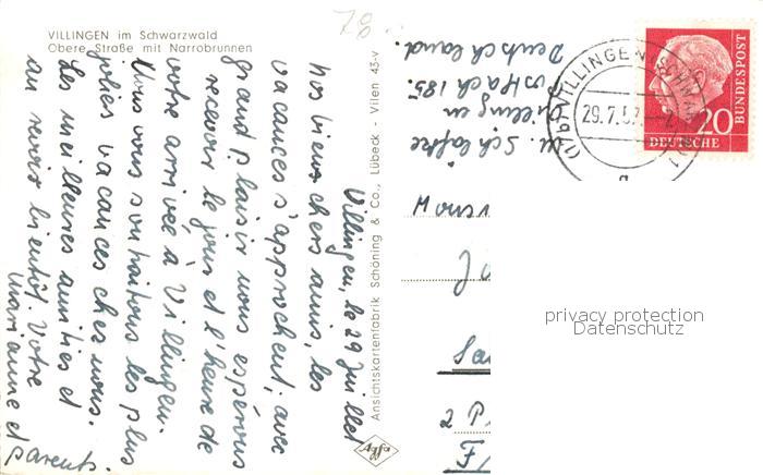 73833953 alte Postkarte Villingen -Schwenningen Obere Strasse mit Narrobrunnen postalisch gelaufen Erhaltung siehe scans [WerneD78] KatCode: 11110008326074