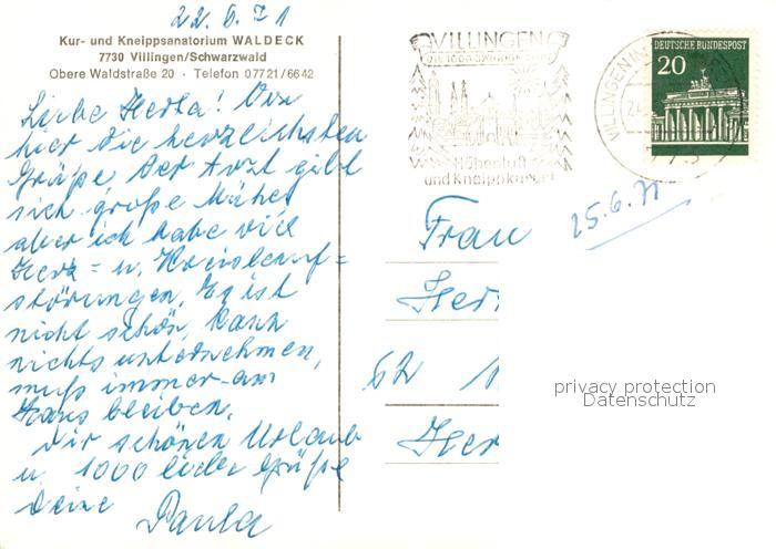 73228682 alte Postkarte Villingen-Schwenningen Sanatorium Waldeck postalisch gelaufen Erhaltung siehe scans [NatalD47] KatCode: 11110008326074
