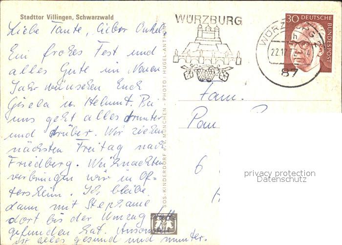 72570634 alte Postkarte Villingen-Schwenningen Stadttor postalisch gelaufen Erhaltung siehe scans [AndreD76] KatCode: 11110008326074