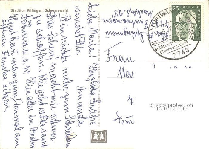 71830420 alte Postkarte Villingen-Schwenningen Stadttor postalisch gelaufen Erhaltung siehe scans KatCode: 11110008326074