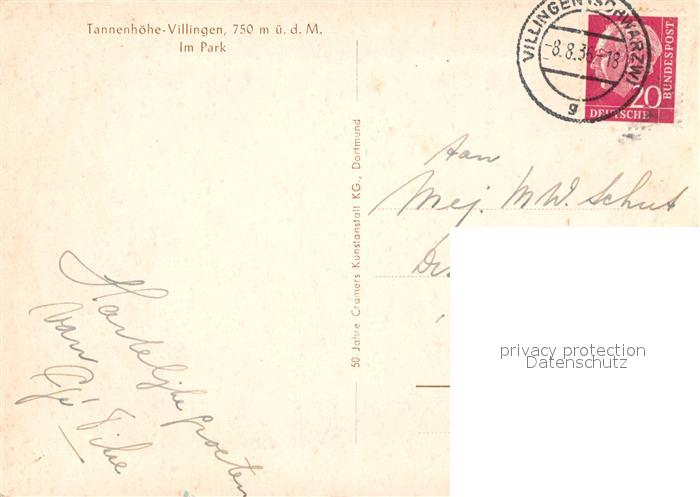 72929426 alte Postkarte Villingen-Schwenningen Tannenhoehe Im Park postalisch gelaufen Erhaltung siehe scans [LiesaD40] KatCode: 11110008326074